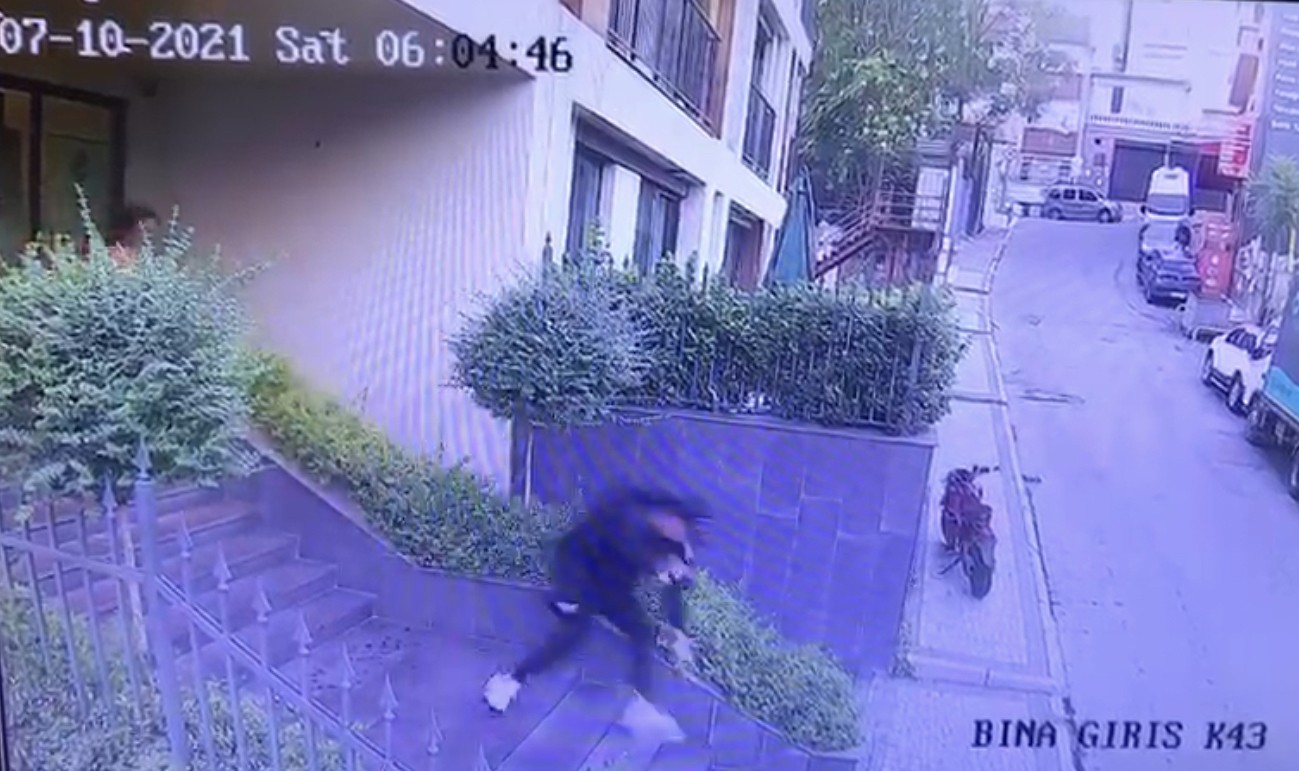 Kadından kaçmaya çalışan Al Fehaid Saad M., dengesini kaybederek otel önündeki merdivenlerden aşağıya yuvarlanarak yaralandı. Al Fehaid Saad M. yere düşerek elini başının altına koyup beklemeye başlarken, genç kadın ise yerden aldığı çantasıyla ve tekmelerle şahsa saldırdı.