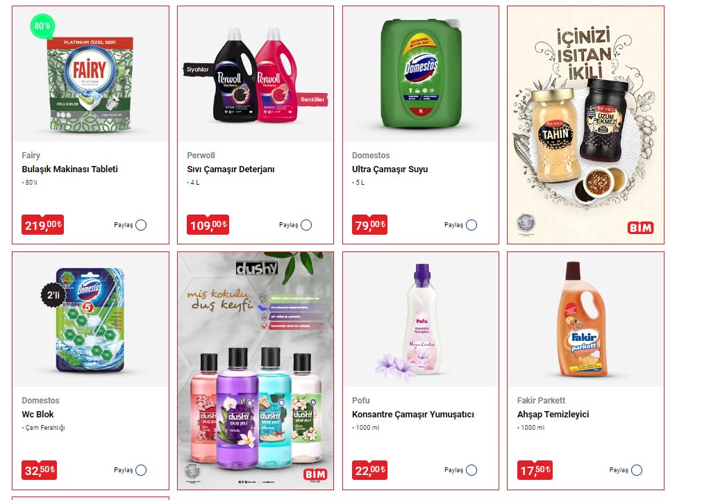 BİM 14 Şubat 2023 aktüel ürünler kataloğu yayımlandı. Bu hafta BİM'de 80'li Bulaşık Makinası Tableti 219 TL, 4 litre Sıvı Çamaşır Deterjanı 109 TL, 5 litre Ultra Çamaşır Suyu 79 TL, Wc Blok 32, 50, Konsantre Çamaşır Yumuşatıcı 22 TL, Ahşap Temizleyici 17,50, Hijyenik Ped Gece Paketi 59,50, Buhurdanlık - Esans ve Mum Seti 75 TL, Miracle Serum Saç Bakım Kremi 59 TL, Kakaolu Fındık Kreması 49, 50'ye düştü. İndirimleri kaçırmak istemeyenler hemen BİM kataloğuna baksın! İşte 14 Şubat'tan itibaren geçerli indirimli ürünlerin tamamı...