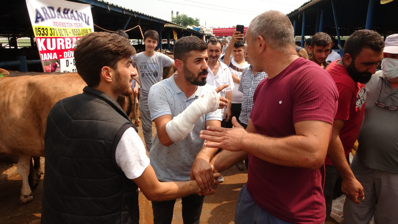 Pazarlık anının ve sargılı kolunun görüntülerini sosyal medya hesabından paylaşan Özgür Kahraman'ın videosuna, kısa sürede çok sayıda beğeni geldi.