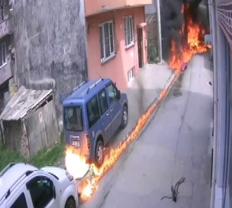 İnfilak eden uçağın düştüğü sokakta 5 metre ileride biri çocuk iki kişinin de mutlak ölümden kurtulduğu görüntülerden anlaşılıyor.