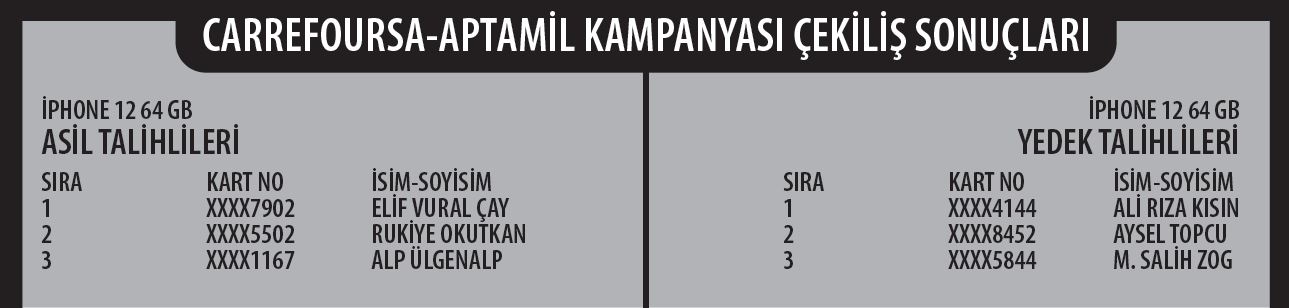 Milli Piyango İdaresi'nin 07.01.2021 tarihli izni ile düzenlenen Carrefoursa-Aptamil çekilişine 4605 katılım gerçekleşti.