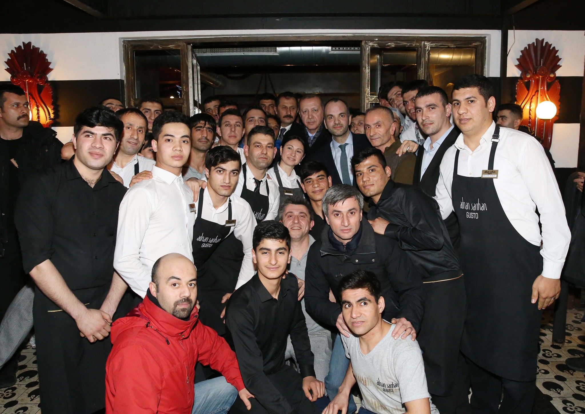 Burada bir süre kalan Erdoğan, mekandan çıkarken, çalışanlarla fotoğraf çektirdi ve kendisini dışarıda bekleyen vatandaşlarla selamlaştı.