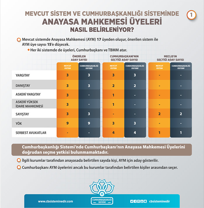 Türkiye'yi şahlandıracak tarihi referanduma sayılı günler kala yargı atamalarıyla ilgili algı operasyonları yapılıyor. 18 maddeyi okumadan 'hayır' kampanyası yapıp halkı yanlış bilgilendirenlerin foyası bir bir ortaya çıkıyor. Peki AYM ve HSK üyeleri mevcut sistemde nasıl belirleniyordu Cumhurbaşkanlığı Hükümet Sistemi'nde nasıl belirlenecek? İşte yanıtı...
