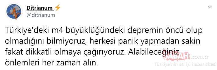 "Türkiye'deki m4 büyüklüğündeki depremin öncü olup olmadığını bilmiyoruz, herkesi panik yapmadan sakin fakat dikkatli olmaya çağırıyoruz.