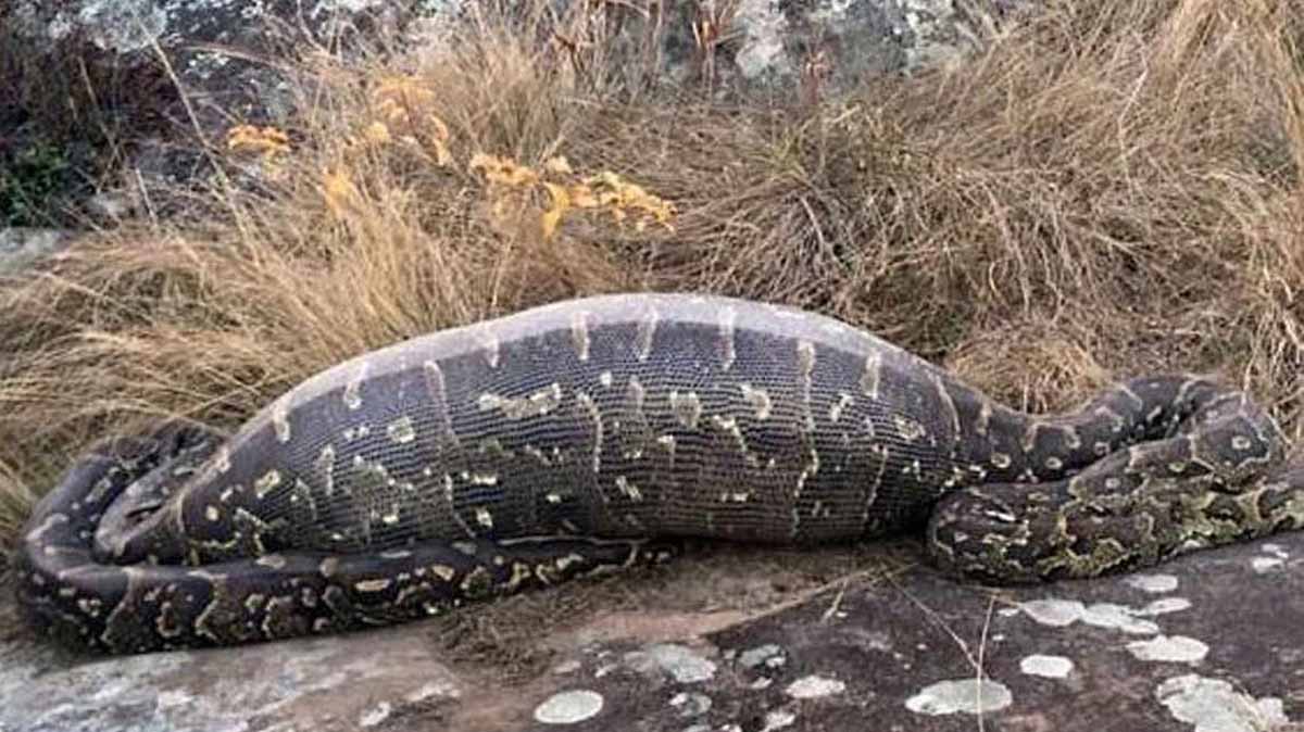 Çalılıkların içinde şişmiş dev yılanı görenler gözlerine inanamadı.