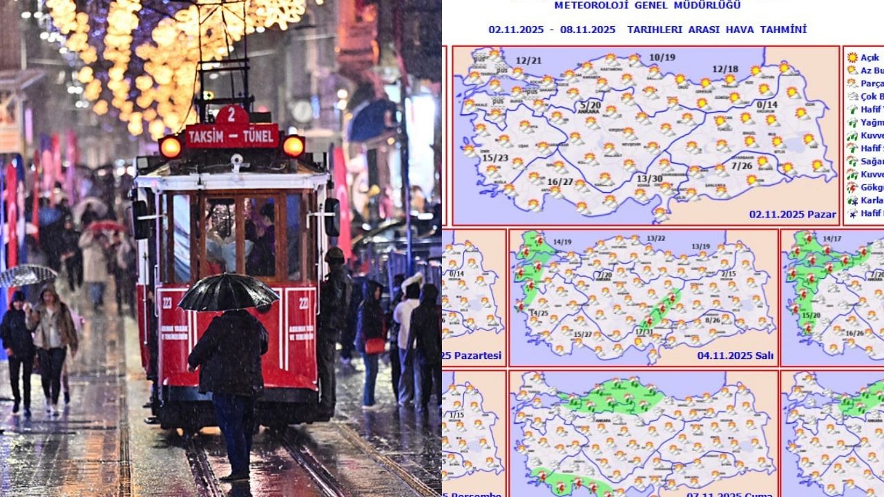 Meteoroloji Genel Müdürlüğü'nün (MGM) son tahminlerine göre, Türkiye kasım ayının ilk haftasında belirgin bir hava değişimi yaşayacak. 2-3 Kasım tarihleri arasında etkili olan ılık hava ve yer yer sisli sabahlar, 4 Kasım Salı gününden itibaren yerini yağışlı ve serin bir havaya bırakacak. Özellikle 5 Kasım Çarşamba günü geniş bir coğrafyada hissedilecek soğuk hava dalgası sonbahardan kışa geçişin ilk adımı olacak. Peki yeni haftada İstanbul'da hava nasıl olacak, yağmur yağacak mı? İşte 5 günlük hava durumu raporu