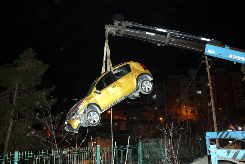 Alınan bilgiye göre, Yasin D. yönetimindeki 05 AAR 819 plakalı otomobil, İhsaniye Mahallesi'nde yol kenarındaki bir evin çatısına düştü, ardından bahçeye devrildi.