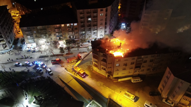 Elazığ'da bir binada çıkan yangın geceyi aydınlattı.