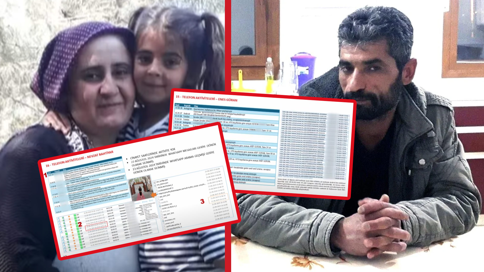 Diyarbakır'ın Bağlar ilçesinde geçen yıl öldürülüp çuvala konularak cesedi dere yatağına gizlenen 8 yaşındaki Narin Güran cinayetinde tutuklu sanıklardan anne Yüksel ve ağabey Enes Güran'ın avukatları, olay saatinde müvekkillerinin ve diğer sanıkların telefonlarındaki hareketlilikle ilgili uzman bilirkişi tarafından hazırlanan raporu mahkemeye sundu. Nevzat Bahtiyar'ın iddiasının çürütüldüğünü savunan avukatlar, raporu mahkemeye sunarak Yüksel ve Enes Güran'ın tahliyesi için başvuruda bulundu.