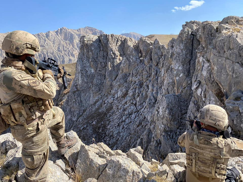 Hava destekli operasyonda ilçenin kırsalında teröristlerce kullanılan 12 mağara, sığınak ve depo tespit edildi.