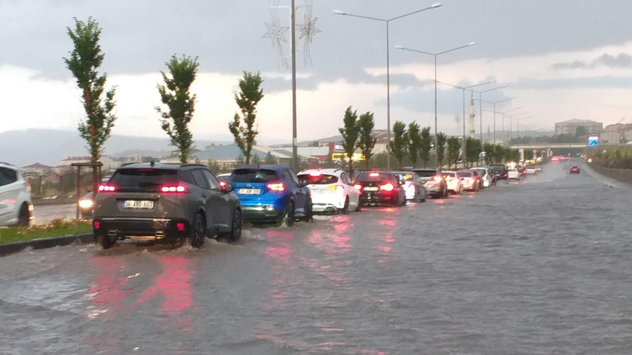 Kısa süreli dolu yağışının ardından sağanak hızını artırarak devam etti. Kent merkezinde yağmur suları ile dolan alt geçitler trafiğe kapatılırken, göle dönen caddelerde araçlar ilerlemekte güçlük çekti.