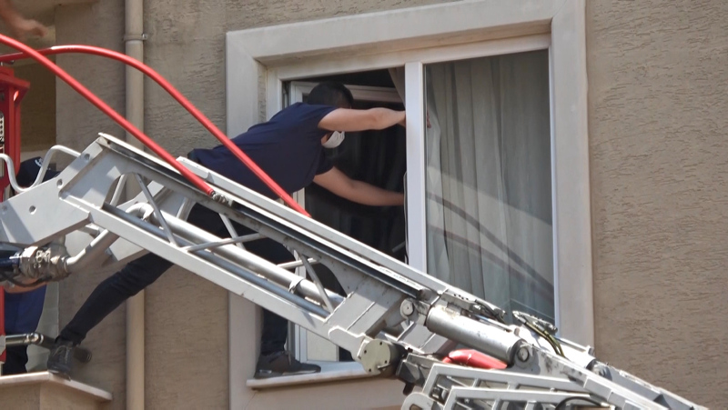 B.H.'yi ikna etmek için uzun süre uğraş veren ekipler, çabalar sonuçsuz kalınca, eve girmek için itfaiyeden yardım istedi.