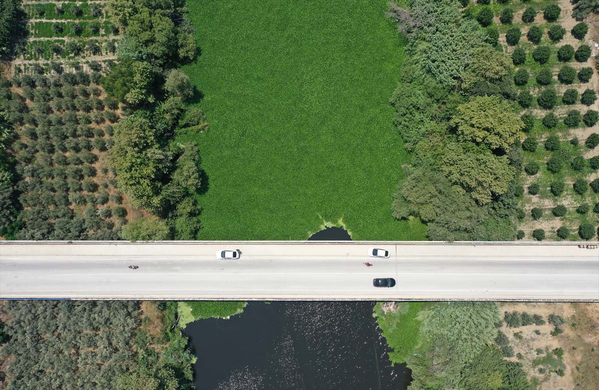 Asi Nehri üzerinde son yıllarda dönemsel olarak görülen ve hızlıca artabilen su sümbülleri, bazı bölgelerde nehrin yüzeyini yeşile bürüdü.