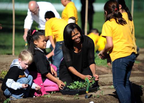 Beyaz Saray’ın ev sahibesi First Lady Michelle Obama, yine ilkokul çocukları ile Beyaz Saray bahçesinin bir bölümünde fide ekim için toprağın hazırlanmasını başlattı.