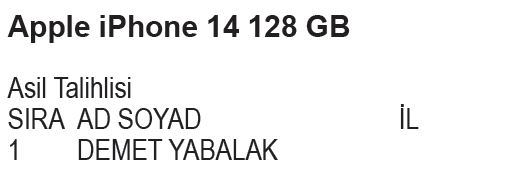 Apple iPhone 14 128 GB kazanan yedek talihli