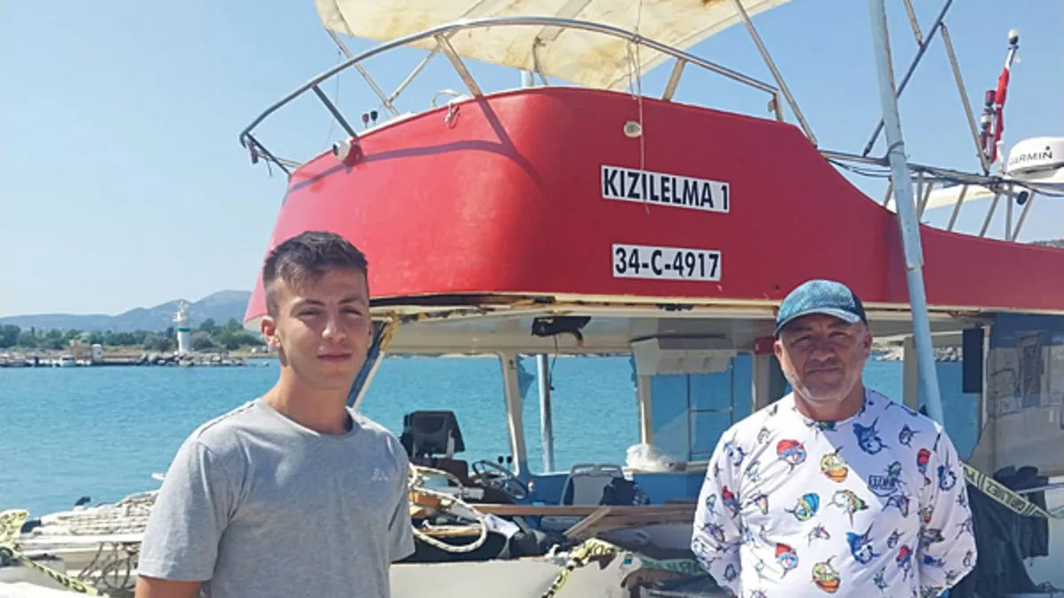 Gökçeada balıkçılık yapan İlker Özdemir, oğlu Efe Özdemir ile Zürafa Kayalıkları mevkiinde balık avlamak için, dün sabah saatlerinde 12 metrelik 'Kızıl Elma' isimli teknesiyle denize açıldı.