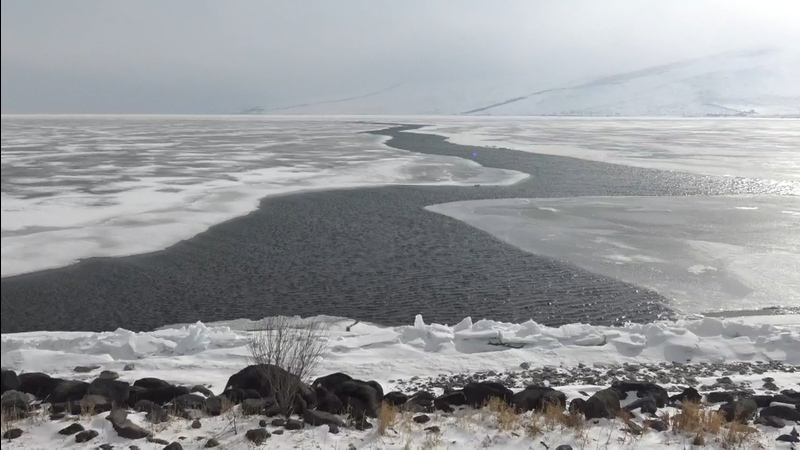 Buralarda normalde bu zamanda festival yapılırdı, kızaklar kayardı, arabalar rafting yapardı ama bu sene erkenden çözüldü. Sadece kıyı tarfındanki buzlar sağlam" diye konuştu.