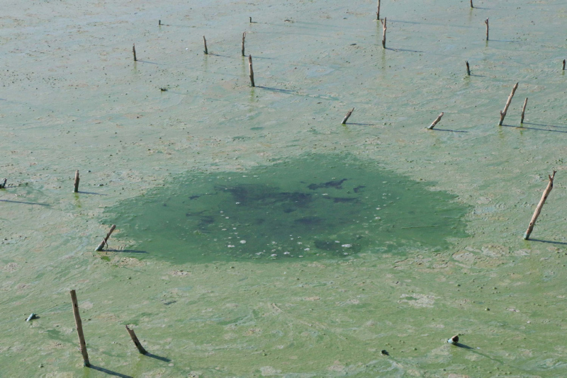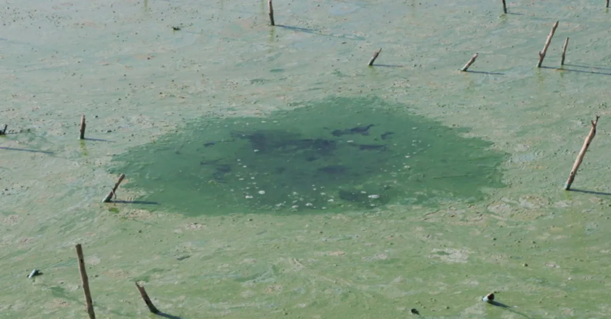 Atatürk Barajı Gölü'nün, Adıyaman kent merkezine yakın bölümünde, su rengi yeşile döndü.