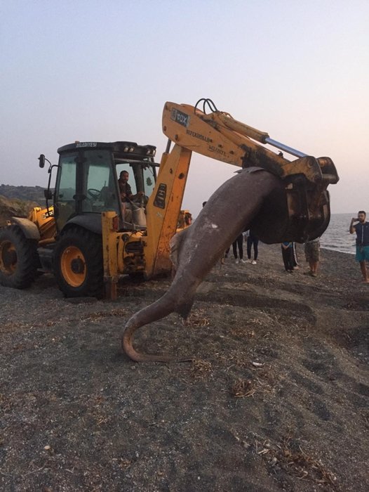 Plajda yürüyüş yapan vatandaşlar köpek balığını görünce şaşkına döndü. Bunun üzerine vatandaşlar durumu Seferihisar Belediyesi ekiplerine bildirdi. İhbar üzerine gelen ekipler, ölü haldeki 3 metre uzunluğundaki köpek balığını iş makinesi yardımıyla plajdan alarak, belediyeye ait hayvan mezarlığına götürüp gömme işlemini gerçekleştirdi.