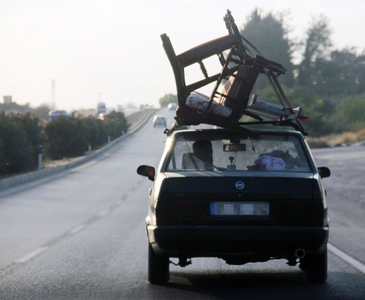 D-400 karayolunun Adana-Mersin güzergahında otomobilinin tavanında 1 kanepe, 2 koltuk ve bir de inşaat merdiveni taşıyan sürücü görenleri hayrete düşürdü. Otomobilini bir kamyonet gibi taşımacılıkta kullanan sürücü, trafiğin en kalabalık olduğu karayolunda çevredekilerin şaşkın bakışlarına aldırmadan yoluna devam etti.