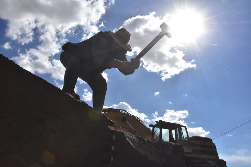 Burada arkadaşlarımızla birlikte tonlarca ağırlıkta bulunan kaya parçalarını büyük kütleler halinde çiviler, balyozlar yardımıyla çıkarıyoruz.