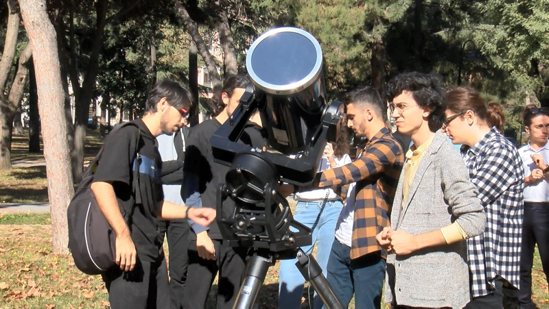 Bugün gerçekleşen parçalı tutulma için İstanbul Üniversitesi Gözlemevi'nin bahçesinde teleskoplar kurularak halka açık etkinlik düzenlendi.