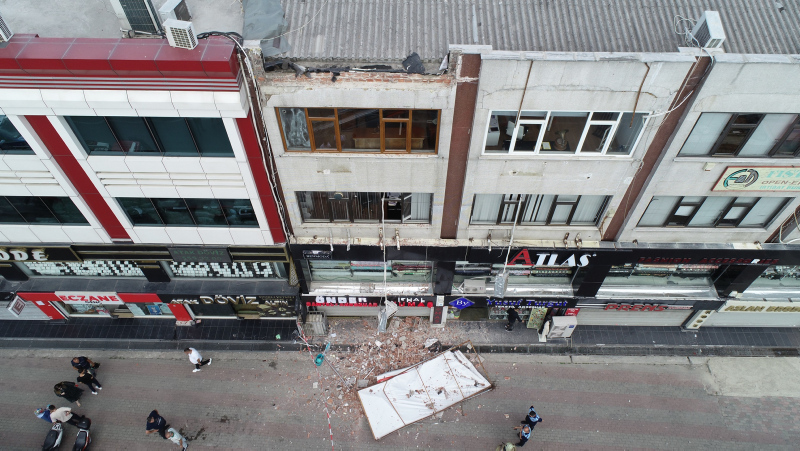 Çatı parçası kaldırıma düştü.
