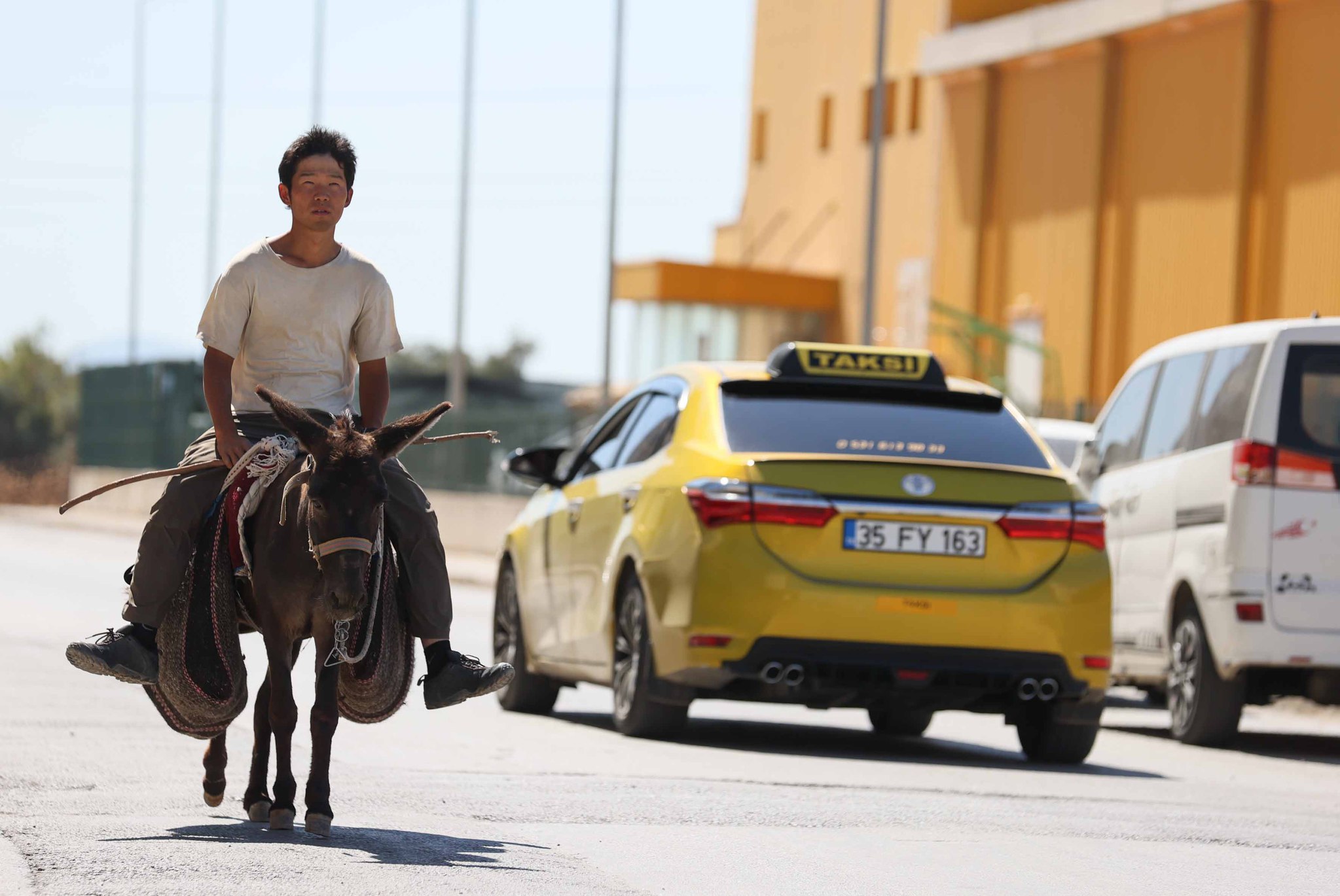 Seyahati boyunca doğayı keşfedip yürümenin keyfini çıkaran Japon turistin Türkiye turu, eşeğini bırakacağı çiftliğin bulunduğu Torbalı'da sona erdi.