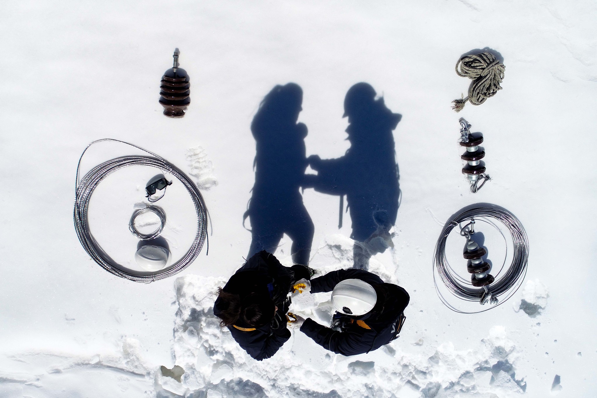 Araçla belli bir noktaya geldikten sonra ekipmanlarını yanlarına alan kadınlar, ekipteki diğer arkadaşlarıyla kar kalınlığının yer yer 2 metreyi bulduğu arıza noktalarına ulaşıyor.