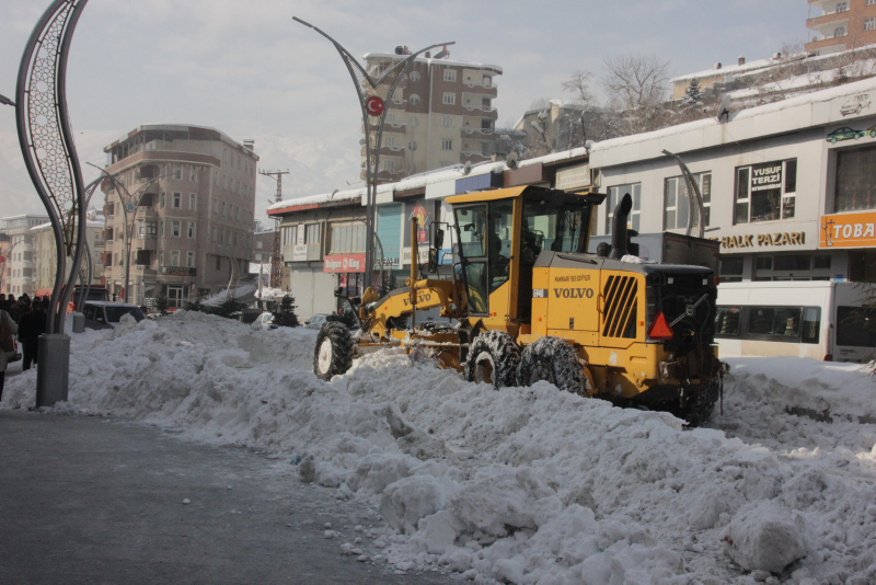 İl Özel İdaresi Yüksekova Şantiye Şefliğine bağlı ekipler, kentteki yoğun kar yağışının ardından karla mücadele çalışmalarını sürdürüyor.