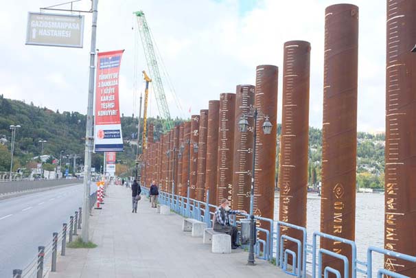 Boğaz'ı daralttığı için zaman zaman tartışmalara sebep olan kazıkların ilki, 2014 yılında emirgan sahiline yol genişletme için çakıldı. 1 yıl sonra Kanlıca-Çubuklu sahilinde, daha sonra Üsküdar meydan düzenlemesi kapsamında tarihi Şemsi Paşa Camii'nin önüne yapıldı.
