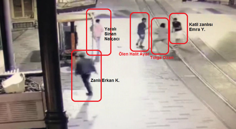 İstanbul Beyoğlu'ndaki İstiklal Caddesi'nde 7 Eylül akşamı, para istedikleri üç arkadaştan İTÜ mezunu elektrik mühendisi Halit Ayar'ı (23) öldüren ve Mustafa Sinan Nalçacı ile Tolga Ozan'ı yaralayan Emra Yaşar ve Erhan Kurdal, İstanbul Adalet Sarayı 6. Ağır Ceza Mahkemesi'nde hâkim karşısına çıktı.