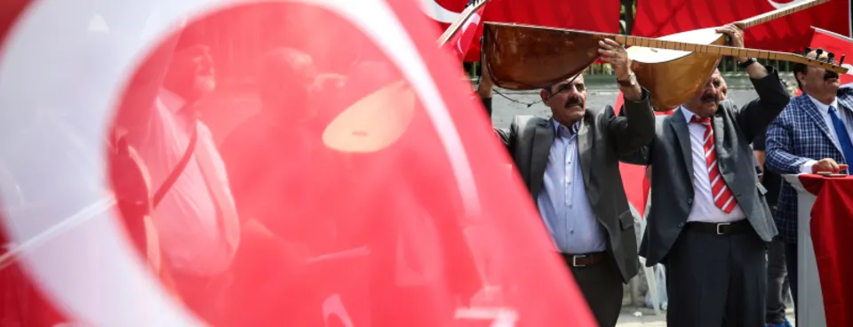 Ozanlar çaldıkları sazlar eşliğinde söyledikleri deyişlerle ABD Başkanı Donald Trump'ı da protesto etti