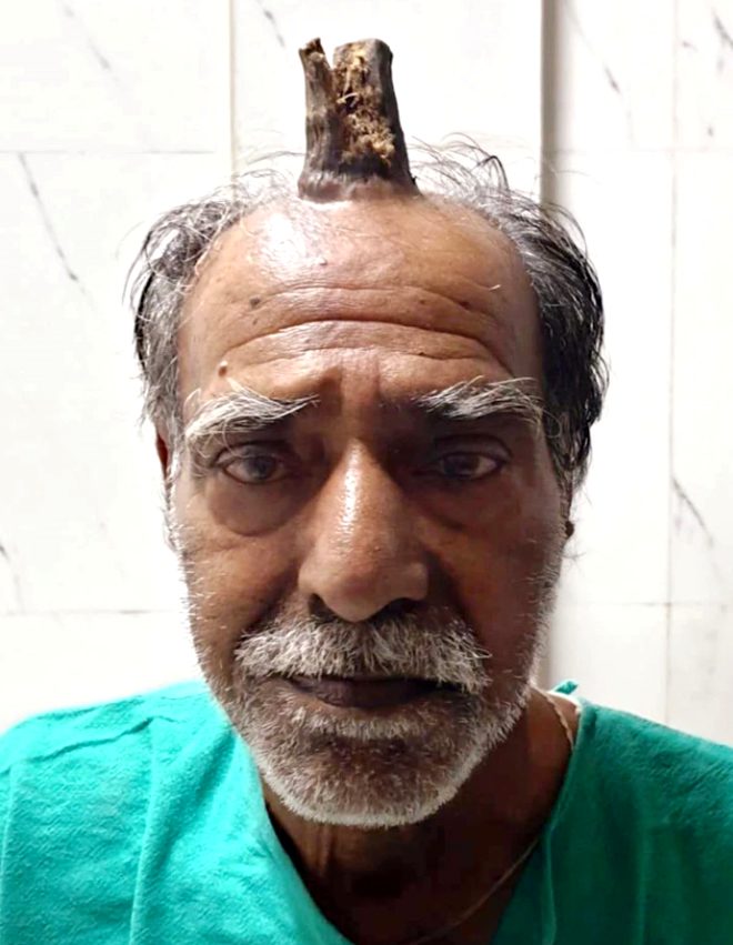 Hindistan'ın, Madhya Prades eyaletindeki Rahli köyünden, 74 yaşındaki Shyam Lal Yadav'ın, kafasında çıkan yaklaşık 10 santimlik tek boynuz, yaklaşık beş yıl önce büyümeye başladı.