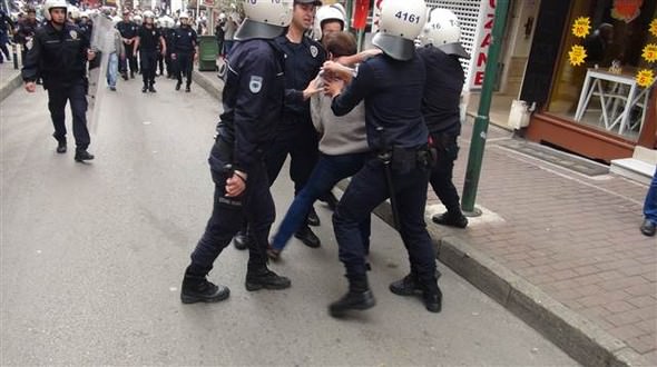 Polisin izin vermediği yürüyüşte, taraflarla görüşme yapıldığı sırada bir grup barikatı aşıp yürümek istedi. Bunun üzerine ekipler müdahale etti. Bazı göstericiler çevredeki iş yerlerinden polislere sandalye ve şişe fırlattı.