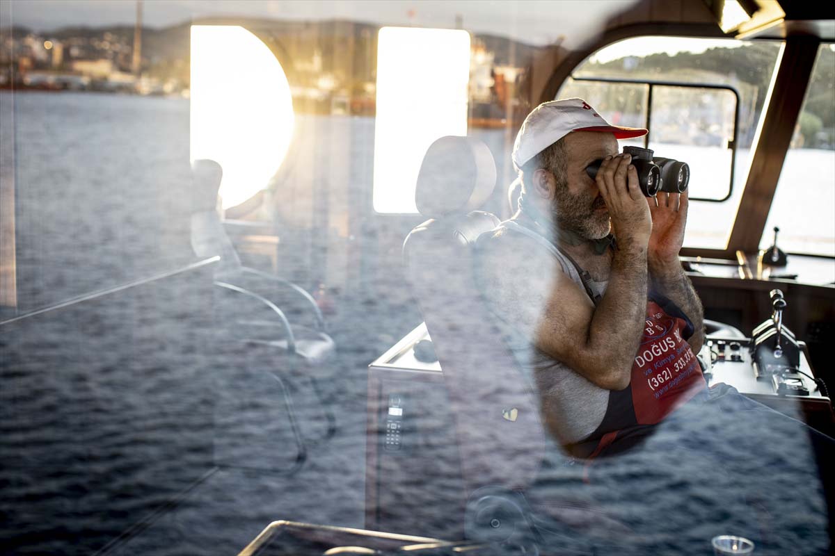 "Deniz Ana" ile Karadeniz'de 5 gün geçiren AA muhabiri, farklı yaş gruplarındaki, kaptanından aşçısına, kamarotundan (gemi ve tekne görevlisi) mantar istifçisine kadar balıkçı tayfasının zor şartlardaki mesaisini görüntüledi.