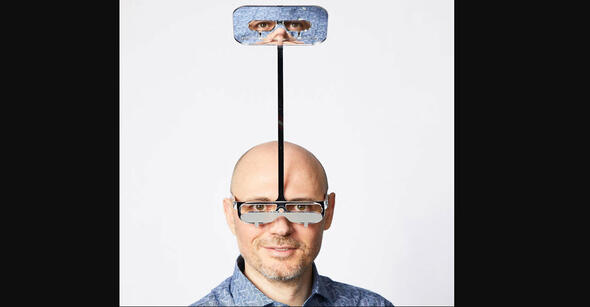 Tasarlanan bu sıra dışı gözlüğün üzerindeki camlar yukarıya, yukarıdaki camlar da gözlüğe bakacak şekilde tasarlandı.