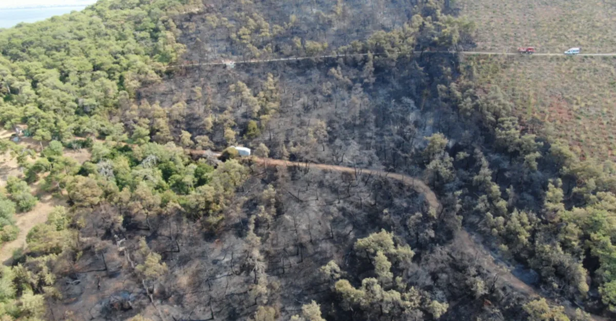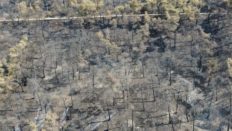 Soğutma çalışmalarının devam ettiği, yeşilin yerini griye bıraktığı Heybeliada'nın son hali ve soğutma çalışmaları havadan görüntülendi.