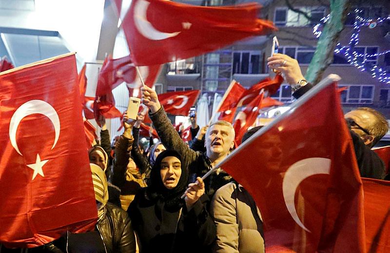 Hollanda'da Türk vatandaşları, Aile ve Sosyal Politikalar Bakanı Fatma Betül Sayan Kaya'nın Rotterdam Konsolosluğuna girişinin engellenmesini protesto etti.