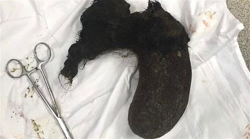 Tıptaki adı Trakifoji olan ve halk dilinde 'saç yeme' olarak bilinen hastalığa yakalanan 30 yaşındaki bir kadın ameliyat edilerek midesinden büyük bir saç kütlesi çıkarıldı.