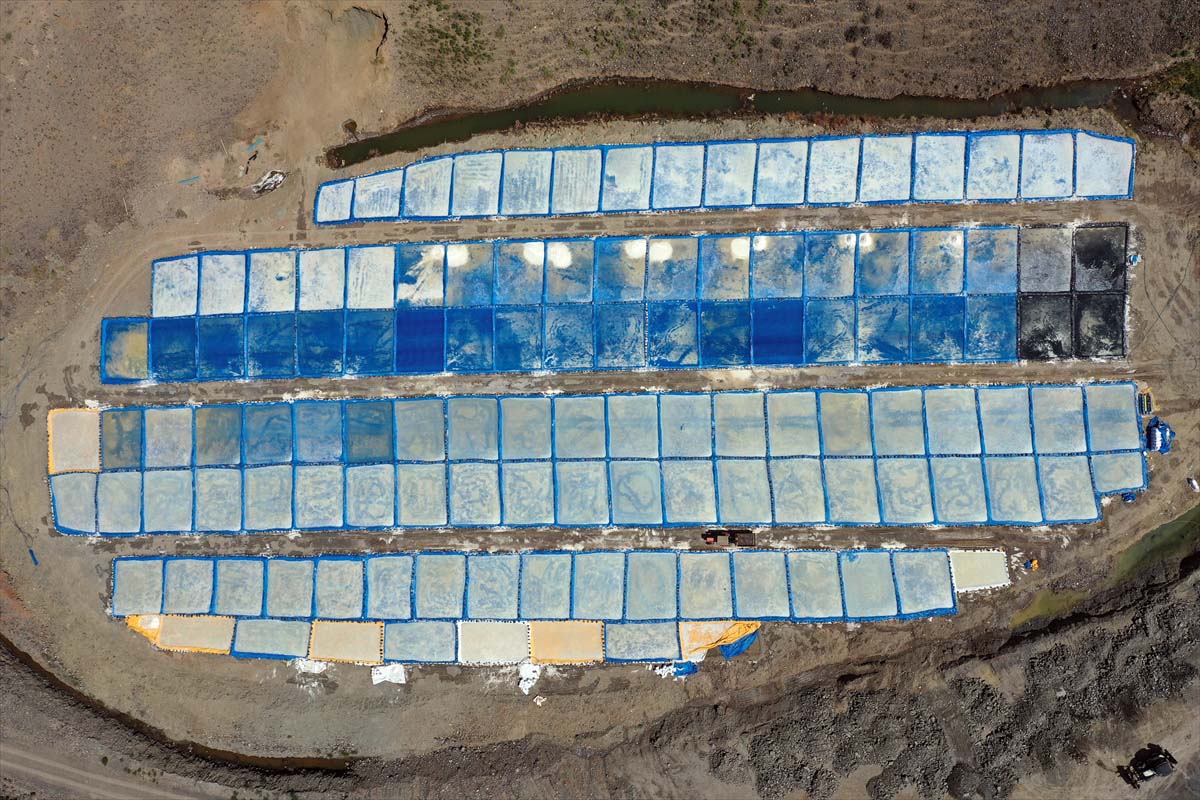 Tuz dağının eteğinde kurulan bir işletme, dağdan gelen bu tuzlu suların önüne kurduğu 130 havuzda suların bir kısmını biriktiriyor.