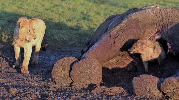 Filin içinde aslanlardan saklanan sırtlan.