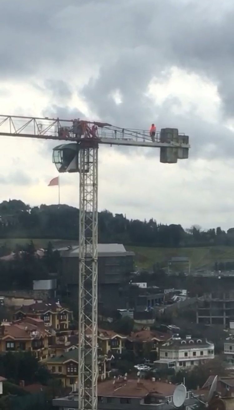 Üsküdar'da yapımı süren bir otel inşaatında kule vinç operatörü olarak çalışan işçi, geçtiğimiz günlerde öğlen vaktinde ezan sesini duyunca, içinde bulunduğu vinci kıbleye doğru yöneltti.