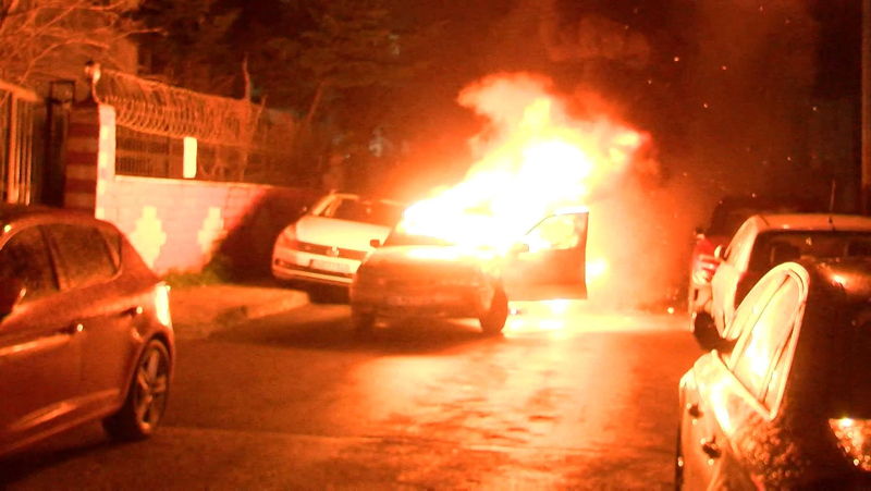 Alevler otomobili sararken, bildirilmesiyle olay yerine itfaiye, polis ve sağlık ekipleri sevk edildi. Alevler, dar sokakta park edilmiş haldeki otomobillere de zarar verdi.