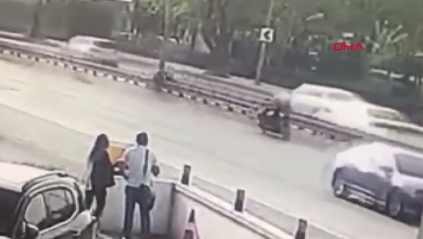 Kaza bir iş yerinin güvenlik kamerasınca kaydedildi.