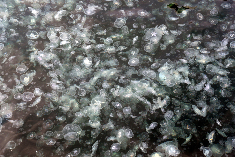 Bu önemli uğrak noktasında, son günlerde deniz yüzeyinde çok sayıda denizanası birikti. Denizanalarının yanı sıra, deniz yüzeyindeki poşet, kova, tenis topu gibi çöpler dikkat çekti. Balıkçılar oltalarına çok sayıda denizanası ve çöpün takıldığını dile getirdi.