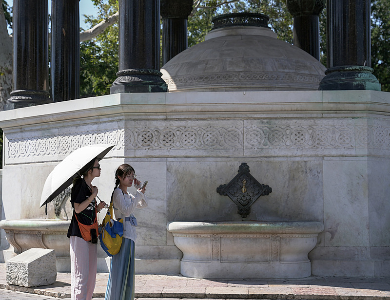 Bunaltıcı havadan korunmak isteyen İstanbullular ve turistler, çareyi şemsiye, şapka ve yelpazede buldu.