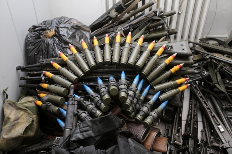 Ele geçirilen silahlar arasında MG3, biksi, doçka gibi ağır silahların yanı sıra HK33, G1, G3, kalaşnikof, glock, MP5 ile bunlara ait çok sayıda mühimmat, yangın çıkarma ve zırh delici özelliği olan 25 milimetrelik top mermileri bulunuyor.