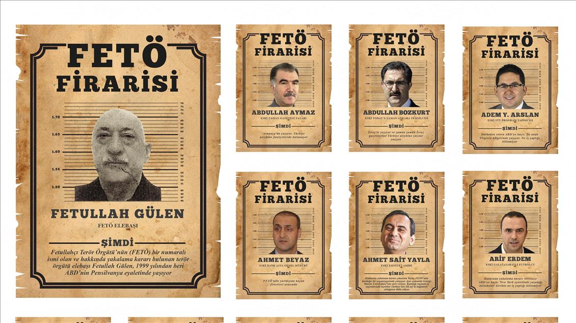 Fetullahçı Terör Örgütü'ne (FETÖ) yönelik yürütülen soruşturmalar ve açılan davalar sebebiyle yurt dışına kaçan ve haklarında yakalama kararı olan birçok şüpheli yurt dışında bulunuyor. Haklarında yakalama kararı olan Fetullah Gülen, Emre Uslu, Ekrem Dumanlı, Hakan Şükür, Arif Erdem, Akın İpek'in yanı sıra örgütün medya, yargı, TSK, polis, eğitim ve iş dünyasındaki uzantıları da yer alıyor