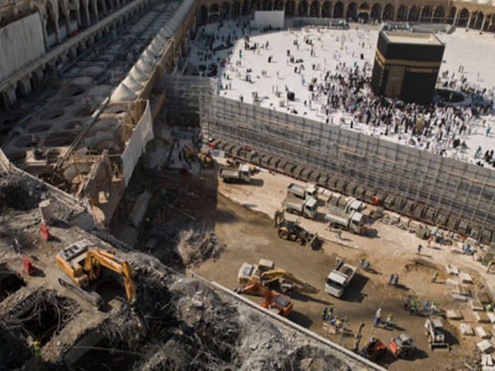 Suudi Arabistan'da Harem'in genişletmesi projesi kapsamında Kabe'nin tavaf alanında başlatılan çalışmalar aralıksız devam ediyor.